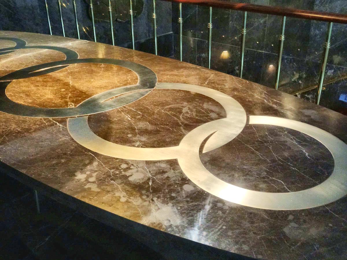 На фасаде бывшего отеля висела большая вывеска - OLYMPIC и 5 олимпийских колец. Было решено смастерить из них столы.