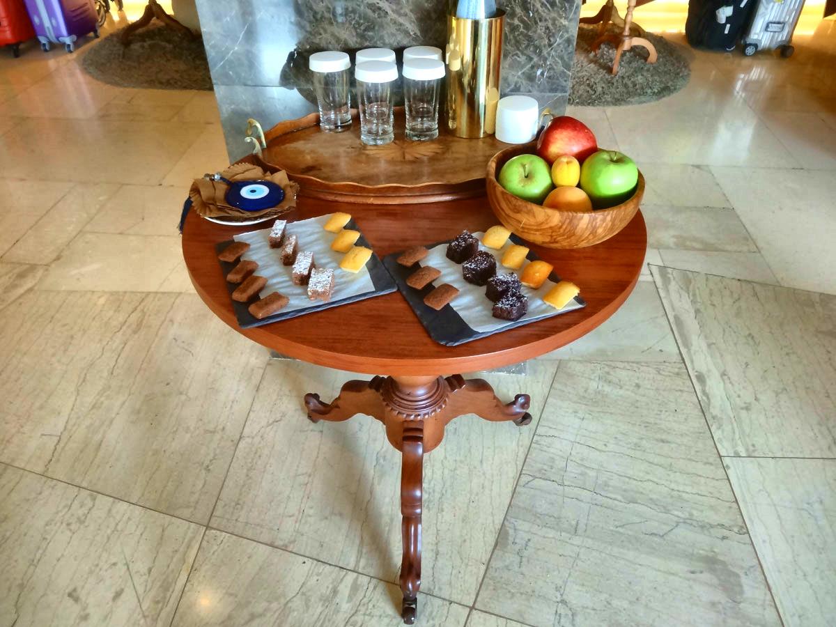 И еще один маленький нюанс: при входе в хол отеля стоит столик, на котором постоянно вода, сладости и фрукты. Так интересно было наблюдать, как проживающие в отеле, приходя с улицы наливали себе воду, брали сладости… Очень уютно, как дома.