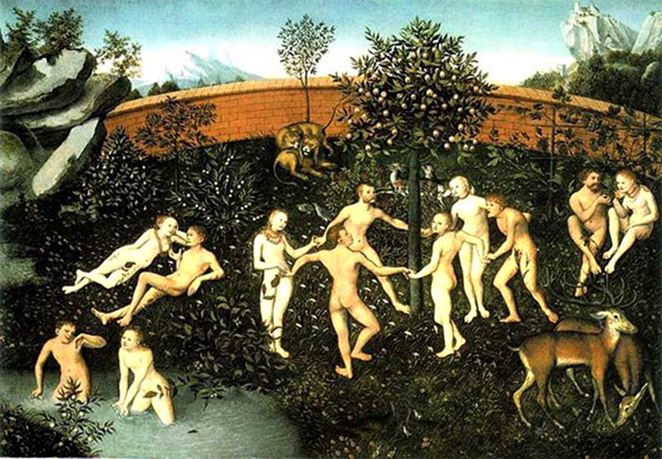 Живущие на светлом Олимпе бессмертные боги первый род людской создали счастливым; это был золотой век. Бог Крон правил тогда на небе. Как блаженные боги, жили в те времена люди, не зная ни заботы, ни труда, ни печали. Не знали они и немощной старости; всегда были сильны и крепки их ноги и руки. Безболезненная я счастливая жизнь их была вечным пиром. Смерть, наступавшая после долгой их жизни, похожа была на спокойный, тихий сон. Они имели при жизни все в изобилии. Земля сама давала им богатые плоды, и не приходилось им тратить труд на возделывание полей и садов. Многочисленны были их стада, и спокойно паслись они на тучных пастбищах. Безмятежно жили люди золотого века. Сами боги приходили к ним советоваться. Но золотой век на земле кончился, и никого не осталось из людей этого поколения. После смерти люди золотом века стали духами, покровителями людей новых поколений. Окутанные туманом, они носятся по всей земле, защищая правду и карая зло. Так наградил их Зевс после их смерти.