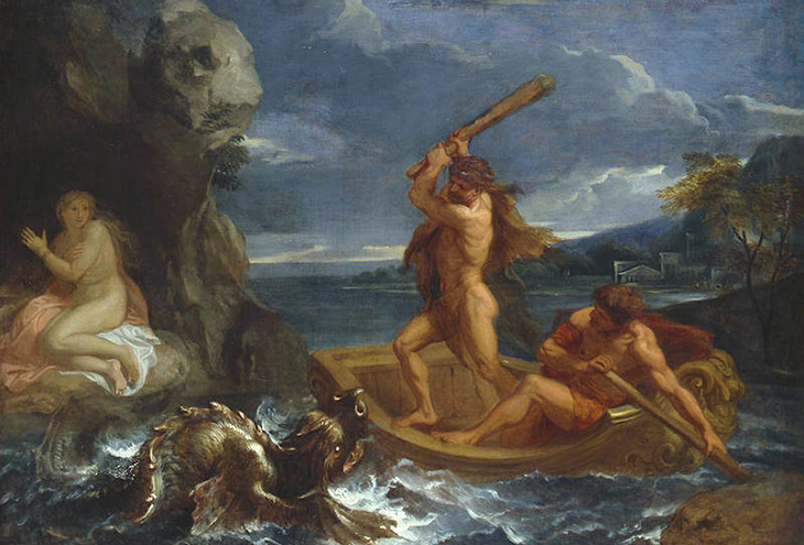 На обратном пути в Тиринф из страны амазонок Геракл прибыл на кораблях со своим войском к Трое. Тяжелое зрелище предстало пред глазами героев, когда они причалили к берегу недалеко от Трои. Они увидели прекрасную дочь царя Трои Лаомедонта, Гесиону, прикованную к скале у самого берега моря. Она была обречена, подобно Андромеде, на растерзание чудовищу, выходившему из моря. Это чудовище послал в наказание Лаомедонту Посейдон за отказ уплатить ему и Аполлону плату за постройку стен Трои. Гордый царь, которому, по приговору Зевса, должны были служить оба бога, грозил даже обрезать им уши, если они будут требовать платы. Тогда, разгневанный Аполлон наслал на все владения Лаомедонта ужасный мор, а Посейдон - чудовище, которое опустошало, никого не щадя, окрестности Трои. Только пожертвовав жизнью дочери, мог Лаомедонт спасти свою страну от ужасного бедствия. Против воли пришлось ему приковать к скале у моря свою дочь Гесиону.