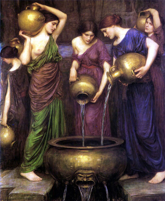 Но данаиды все же не избежали кары за совершенное злодеяние. Они несут ее после своей смерти в мрачном царстве Аида. Данаиды должны наполнять водой громадный сосуд, не имеющий дна. Вечно носят они воду, черпая ее в подземной реке, и выливают в сосуд. Вот, кажется, уже полон сосуд, но вытекает из него вода, и снова он пуст. Снова принимаются за работу данаиды, снова носят воду и льют ее в сосуд без дна. Так и длится без конца их бесплодная работа.