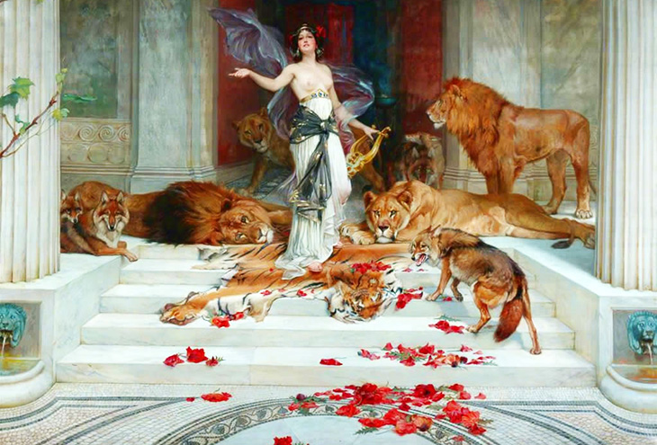 Отправились они в путь и быстро достигли дворца Кирки. Около него ходили ручные львы и волки. Увидав моих спутников, подбежали они к ним и стали ласкаться, словно собаки, ласкающиеся к своим хозяевам, - так укротила их волшебным питьем Кирка. В это время из дворца донеслось до моих спутников звонкое пение, Вызвали мои спутники из дворца Кирку. Вышла она и приветливо просила их войти. Во дворце подала она им вина в чашах, подмешав в него сока волшебной травы. Выпили вино мои спутники, а Кирка, коснувшись каждого жезлом, обратила их всех в свиней, оставив им лишь разум. Загнала их Кирка в хлев и бросила им, проливающим горькие слезы, в пищу желудей. Один лишь Эврилох спасся. Он не вошел во дворец вместе со всеми.