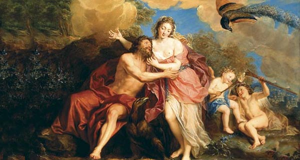 Среди свиты Диониса часто можно было видеть и бога Пана [1]. Когда родился великий Пан, то мать его нимфа Дриопа, взглянув на сына, в ужасе обратилась в бегство. Он родился с козлиными ногами и рогами и с длинной бородой. Но отец его, Гермес, обрадовался рождению сына, он взял его на руки и отнес на светлый Олимп к богам. Все боги громко радовались рождению Пана и смеялись, глядя на него.