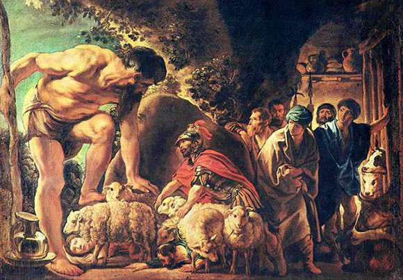 Однажды Сицилию посетил предсказатель Телем и попытался предупредить циклопа о грозящей ему опасности. Мол, придет Одиссей и лишит тебя единственного глаза. Не склонный к метафорам циклоп с иронией ответил Телему, что давно уже его глаз принадлежит не ему, а прекрасной нереиде. Этим самым глазом он однажды углядел прячущихся от него любовников. Влюбленные постоянно искали убежища от бродившего в страстном томлении Полифема то в гроте, то в потайной бухте, опасаясь его дикого нрава и ревности. В этот раз, играя на своей стоствольной свирели, он обнаружил парочку и от ревности впал в неистовство, слетело с него все хорошее, что пробудила в нем любовь.