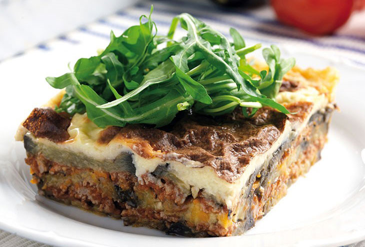 одном из наших рецептов (хотя вариаций этого блюда существует несколько). Нежный говяжий фарш в томатном соусе, покрытый запеченным картофелем и баклажанами под знаменитым бешамелем однозначно запомнится вам надолго.
