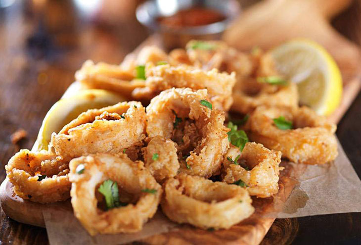 жареные кальмары, которые готовятся с чесноком, лимоном и с непосредственным участием в этом процессе оливкового масла. Выражение «пальчики оближешь» подходит именно к этому блюду как нельзя лучше.