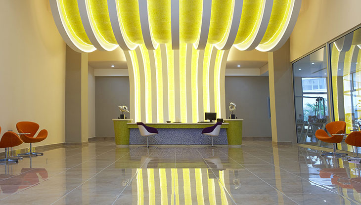 Кредо отеля в полной мере выражает то, что вас ожидает на его территории. Выдержанный в стиле «арт деко хайтек» и преимущественно в теплых тонах дизайн интерьеров Atrium Platinum действительно отдает шиком, но без претензии на помпезность.