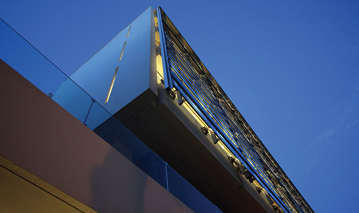 Начать, наверное, стоит с основы основ – здания отеля. Оно выполнено в современном стиле и отличается обилием стекла во внешней отделке, а также разбавляющими стеклянную однотонность элементами традиционного греческого декора и садами.