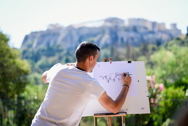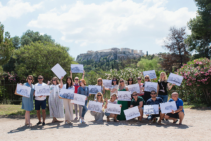 Первые творческие шаги турагентов-живописцев начались с создания рисунка карандашом, а в качестве объекта изображения выступила визитная карточка Греции – древний Акрополь.