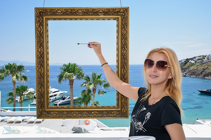 Творческий тур по Греции от Grecotel продолжился перелетом на самый светский остров страны – Миконос, где начинающих, но уже поднабивших руку художников ждал роскошный