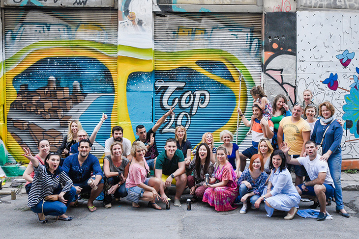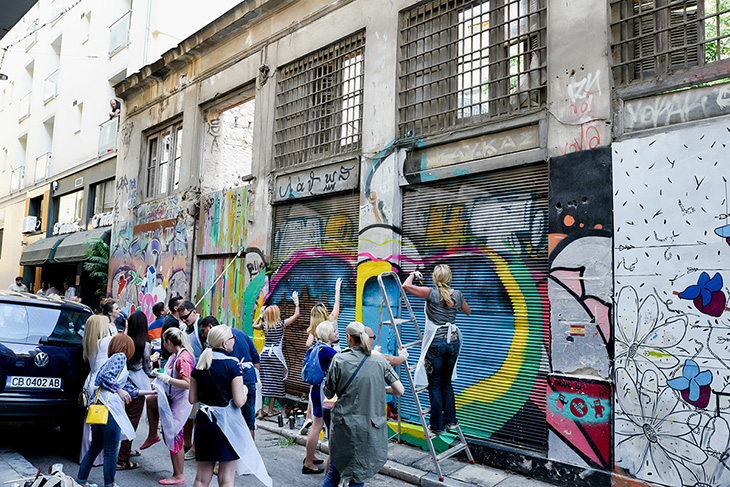 Завершило этот день коллективное творчество в стиле граффити, холстом для которого послужили стены домов в самом центре Афин.