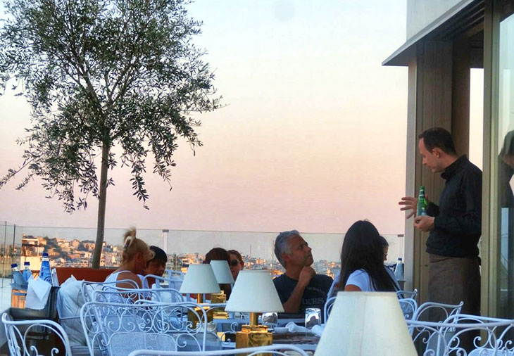Друзья пригласили отужинать на Плаке, но, узнав, что на крыше есть ресторан с видом с одной стороны на Ликавитос, а с другой на Акрополь, я , ощущая себя как дома, решила пригласить друзей на ужин на веранду отеля. Мне очень хотелось посмотреть на реакцию моих друзей… И не ошиблась. Посмотрев на их восхищение лица, я поняла, что выбор был сделан правильно.