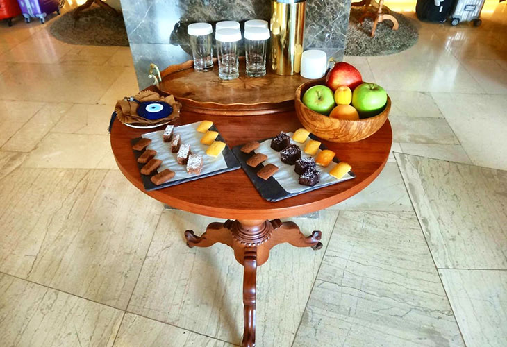 И еще один маленький нюанс: при входе в хол отеля стоит столик, на котором постоянно вода, сладости и фрукты. Так интересно было наблюдать, как проживающие в отеле, приходя с улицы наливали себе воду, брали сладости… Очень уютно, как дома.