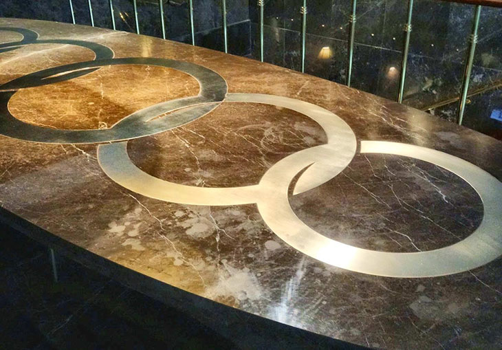 На фасаде бывшего отеля висела большая вывеска - OLYMPIC и 5 олимпийских колец. Было решено смастерить из них столы.