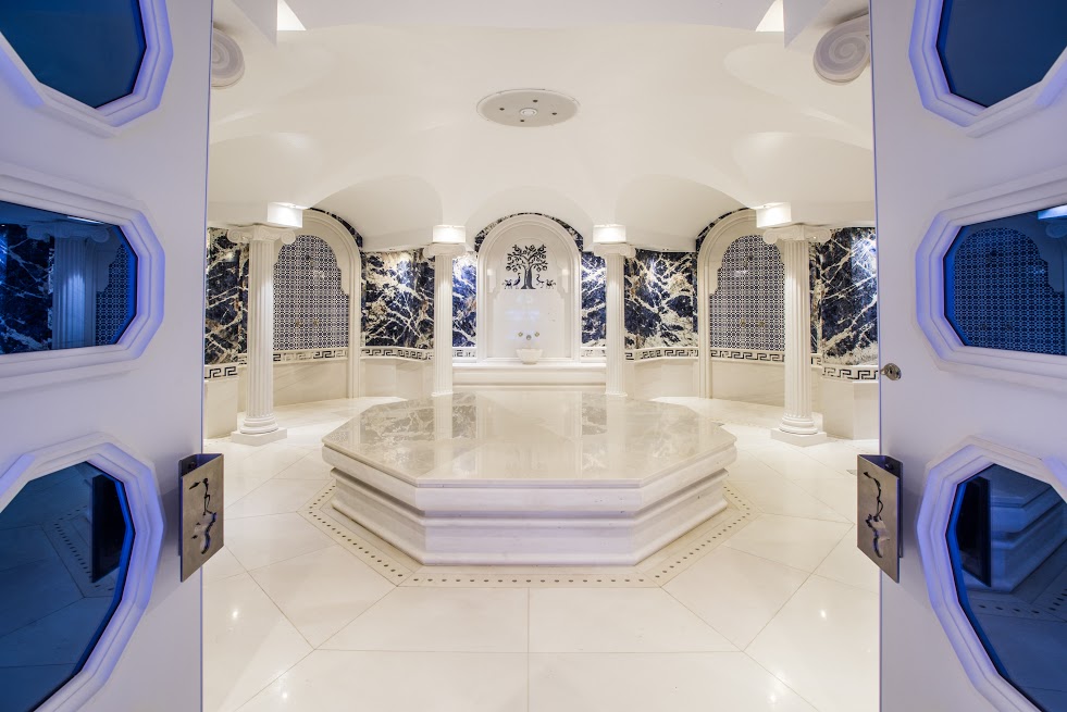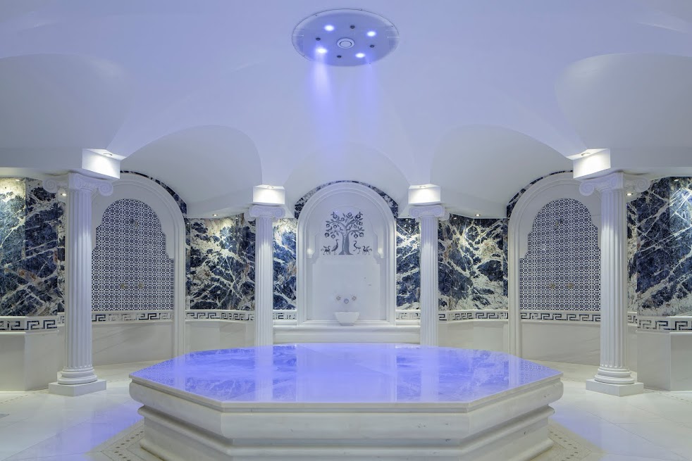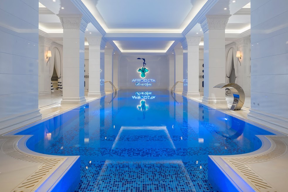 В роскошных интерьерах из белого мрамора, синего содалита с освещением из венецианского стекла расположен SpaPark – водная зона, которая включает в себя целый список различных терапий, а именно: крытый бассейн с морской водой, византийский хамам 70 кв.м., ароматическая паровая баня, соляная комната с гималайской солью, финская сауна, джакузи, ледяной фонтан, русская баня и кадка с ледяной водой, флебологическая дорожка из гальки, kneipp-терапия, тропический дождь и душ с ароматическим туманом, египетская баня расул и спа-лаунж.