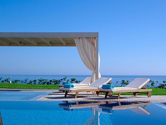 Гости могут отдохнуть на шезлонгах частных бассейнов или наслаждаться греческим солнцем и баловать себя в роскоши на этом уникальном курорте Крита.