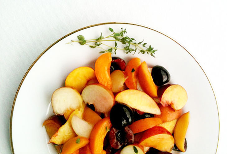 Летний фруктовый салат из нектаринов, греческого сладкого йогурта и листьев мяты