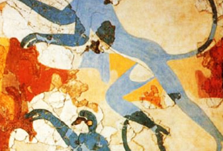 Предметы древнегреческой живописи включают медуз со змеями, кентавров, танцующих девушек, олимпийских атлетов и богов. Греческая гробница с пятого века до нашей эры показывает спортсмена, ныряющего из одного мира в другой.
