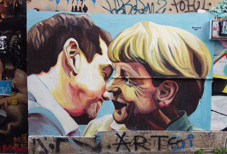 Эта фреска была написана художником под псевдонимом Юпитерфаб (Jupiterfab) в 2016 году. Расположена на стене на Псирри. На ней изображен бывший премьер-министр Греции Алексис Ципрас, наклонившийся для поцелуя с канцлером Германии Ангелой Меркель.