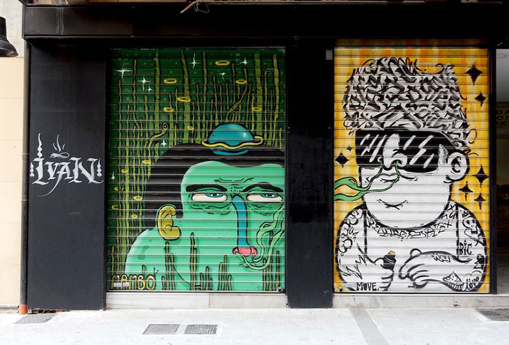 Следующая фреска - замечательный пример сотрудничества в мире граффити. Уличное искусство, как правило, основано на сообществе, потому что все художники работают на одном полотне. Однако произведения, которые так явно сотрудничают друг с другом, встречаются немного реже.