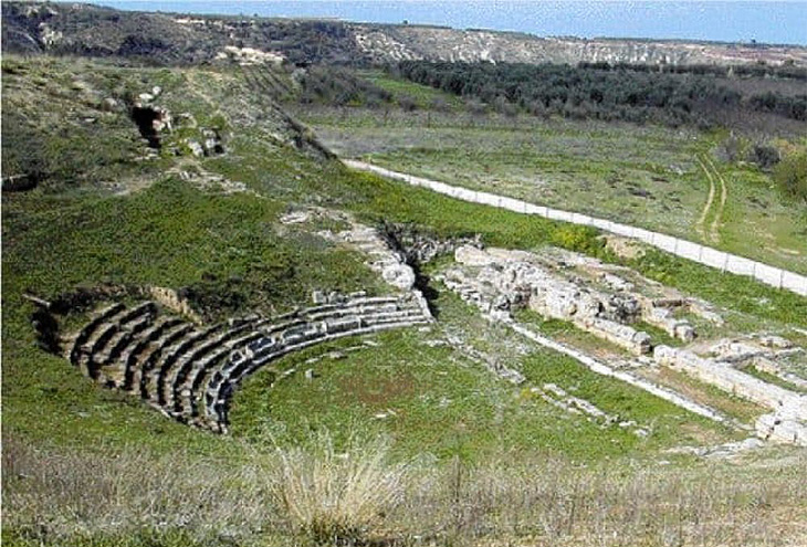 Однако сегодня четко видны очертания амфитеатра с несколькими рядами каменных сидений, оркестровой площадкой в форме подковы, на которой видны дренажные канавы или другие впадины, а также остатки древней сцены.