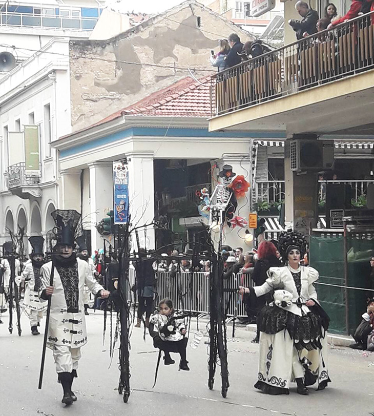В последнюю неделю карнавала город просто не узнать. Всё движется в одном большом празднике, и днем и ночью! Уличные танцы, тематические парады, поиск скрытого сокровища, детский карнавал, «Бурбулия», уличные театры, выставки, концерты, инсталляции и перфомансы – всё это превращает Патры в бесконечный фейерверк радости и восторга! Ну и конечно же парад в последний день торжеств, который проходит по центральной улице города. Участники парада приезжают со всех городов страны , готовятся к нему весь год, строят автомобиль – платформу так, чтобы их «создание» стало самым ярким и запоминающимся.