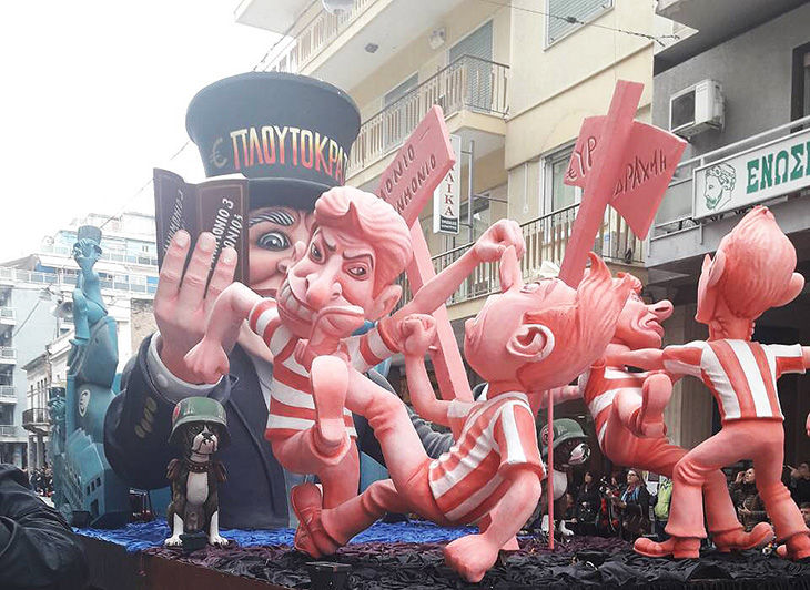 В былые времена авто – платформы посвящали сказочным историям и персонажам. Сегодня же греки предпочитают заявлять о своих недовольствах тем, что делает Правительство иносказательно, создавая из авто – платформы целую историю. Итак, каждую такую чудо – машину во время шествия сопровождают порой до 100 человек - жителей региона или города.