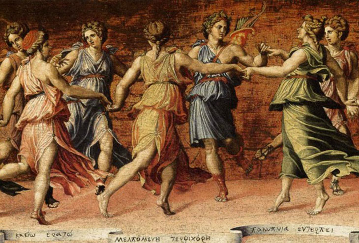 Согласно древнегреческой мифологии, музы являются источником вдохновения для всех искусств и знаний. Дочери Зевса и Мнемозины, они были романтическими спутниками свиты богов Аполлона.