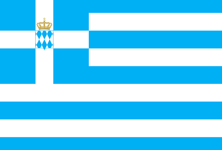 На первой версии этого культового флага в центре креста были изображены герб и корона из Баварии, родины первого короля Греции Отто. Его полосы тоже светло-голубого, почти бирюзового цвета.