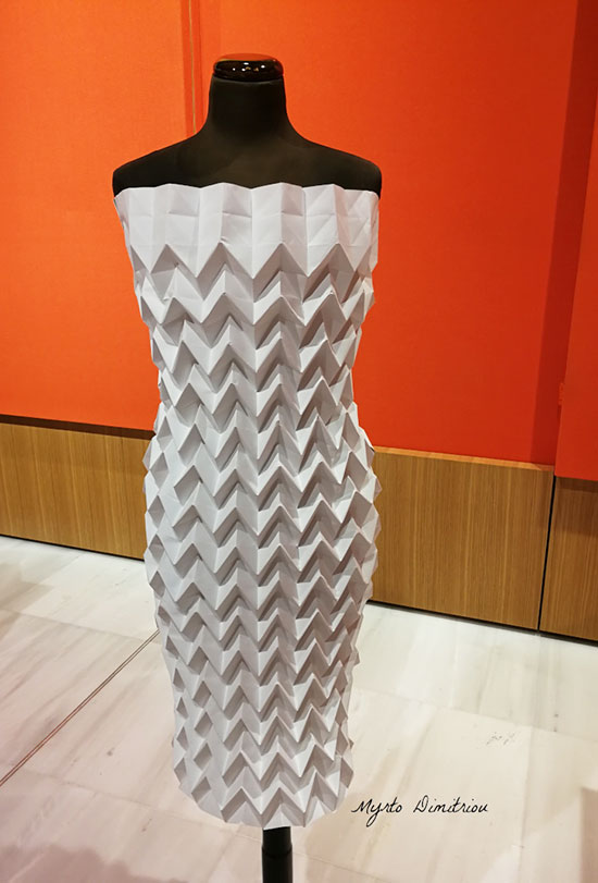 «Искусство складывания для создания чего-то трехмерного, например платья, из клочка бумаги – настоящее волшебство», - заявила дизайнер. Без швейных машин и пряжи художница создала фальцованные бумажные работы, которые готовится продемонстрировать в Афинах и Салониках.