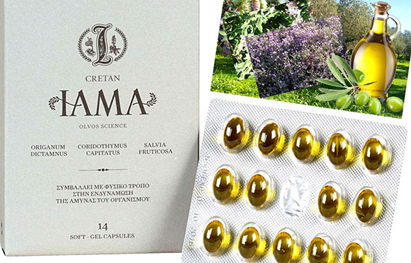 Препарат ΙΑΜΑ, имеющий зарегистрированный международный патент, является абсолютно натуральным продуктом, так как он содержит критской тимьян, душицу и шалфей, которые в сочетании с местным оливковым маслом и медом создают уникальный щит для организма.