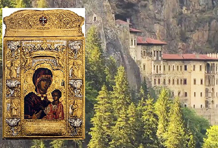 Икона была найдена в конце четвертого века нашей эры в пещере на горе Мела, и на этом самом месте был построен монастырь во славу Божию. Икона была переименована в Панагию Сумела.