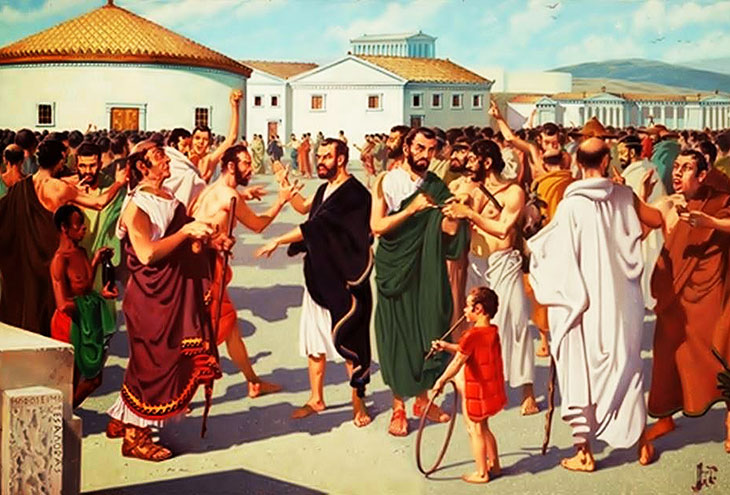 Однако, город Афины, изобретший правительство демократии, долгие годы находился под властью народа.