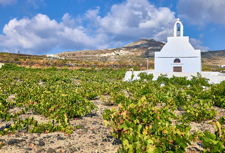 Главный герой винной сцены Санторини — сорт винограда Асиртико. Он отличается высокой кислотностью, свежестью и необычной минеральностью, которая обусловлена вулканическим происхождением почвы. Этот сорт не боится жары и засухи, прекрасно адаптируется к экстремальным условиям и даёт урожай даже там, где кажется невозможным что-либо вырастить.