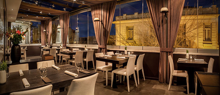 Меню «а ля карт» от удостоенного звезд Мишлен шеф-повара Лефтериса Лазару предлагает гостям познакомиться с традиционной греческой кухней, в ее современной интерпретации, и местными винами, способными порадовать даже самых взыскательных гостей.