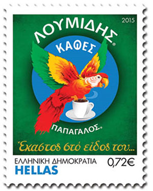 Известный греческий кофе Лумидис Папапгалос (Λουμίδης Παπαγάλος), товарный знак с изображением попугая |