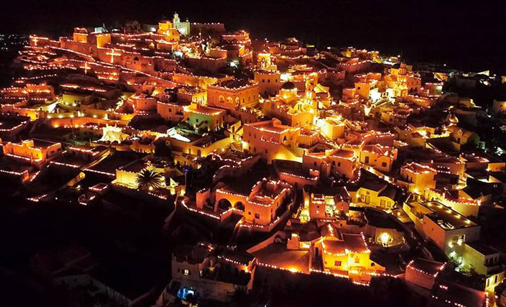 Самый белоснежный, самый загадочный, самый романтичный – именно в таких выражениях принято отзываться об острове Санторини. Однако в пасхальный период один из популярнейших курортов Греции вполне заслуживает звания самого волшебного уголка страны. Если в дневное время суток главные городки Санторини лучатся своей белизной, то вечером в Страстную Пятницу в дело вступает иллюминация невиданных масштабов. В соответствии с традицией местные жители вывешивают праздничные фонари практически на каждом шагу, в результате чего Пиргос, Ия и Контохори становятся похожи на кукольные города еще больше, чем днем.