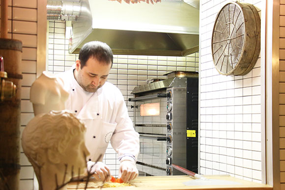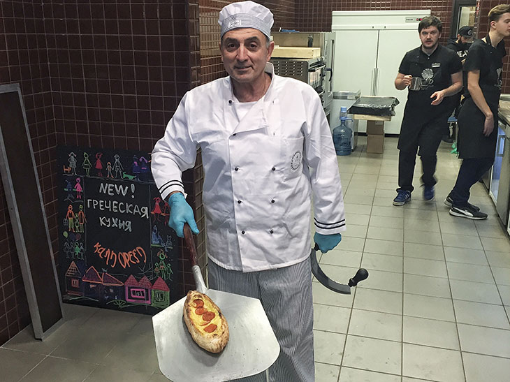 В новой же точке с греческими пенерли мы познакомились и с папой Мико, который достал из печи и вынес нам на специальной лопате вкусный «кораблик».