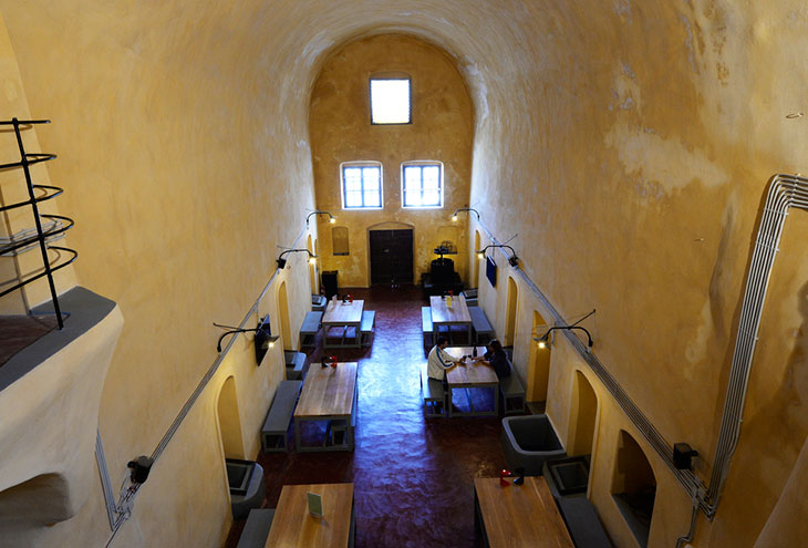 Винодельня была построена нетрадиционным способом, построен сначала верх здания, а потом низ, всего четыре уровня.