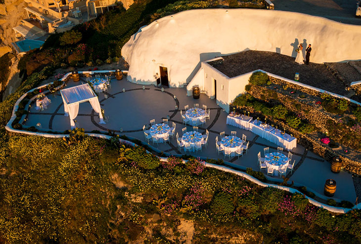 Пользуясь прекрасным расположением с видом на кальдеру, винодельня также имеет террасу, которая доступна для проведения мероприятий, таких как свадьбы,
