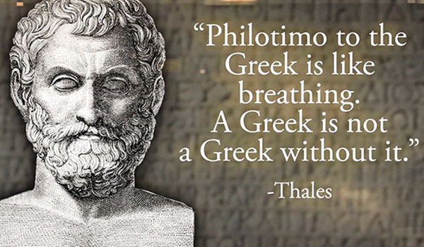 Для исполнительного директора Фонда Brookings, Виллиам Антолис, филотимо означает жертву, в то время как для его отца это понятие воплощено в жертву 300 спартанцев в Фермопилах.