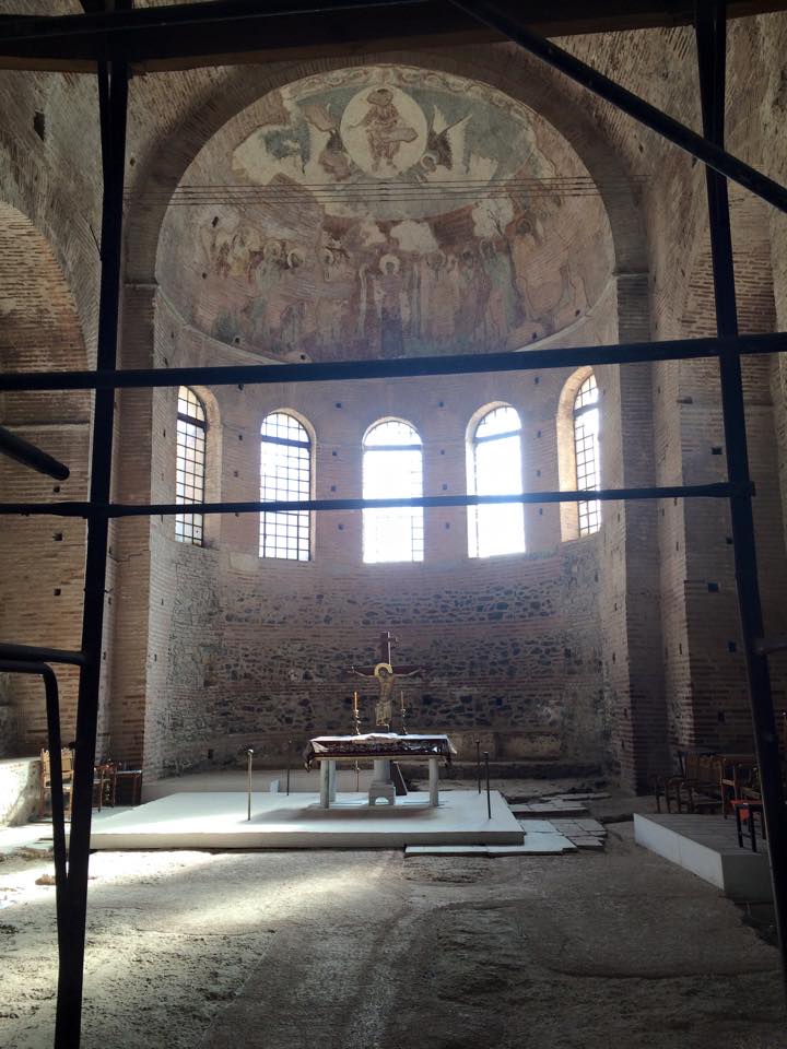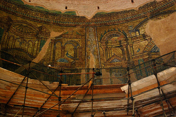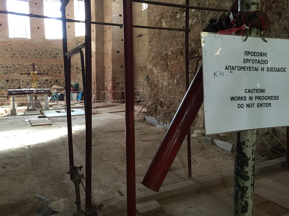 Обратный отсчет для демонтажа строительных лесов в Ротонде начался в апреле прошлого года. Это было на страстной неделе, когда глава Фонда древностей города Салоники разослал SOS во все инстанции об опасности для Ротонды. В то время с поросшей травой крыши свисали, в буквальном смысле, сады Семирамиды ... Дождевая вода стала попадать внутрь купола, создавая непосредственную угрозу шедеврам мозаичного искусства.