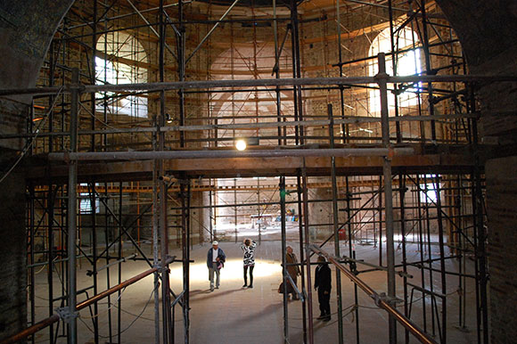 Здесь собираются что-то реставрировать или все эти леса – способ удержать разваливающиеся стены? Для мня это было непонятно. Но даже в таком состоянии энергетика Ротонды, через окна которой сочился таинственный свет, завораживала.