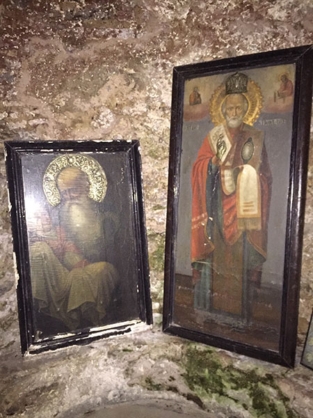 Еще несколько ответвлений катакомб приводят к старым иконам – некоторые образы настолько древние, что трудно рассмотреть изображение.