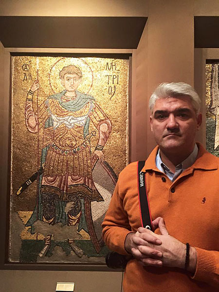 Конечно, спустились мы и в зал с иконами, и первое что увидели - мозаику Димитрия Солунского, покровителя греческого города Салоники, 1113 года.
