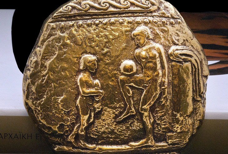 Как это не странно, но в футбол играли еще в Древней Греции. Экспонат, выставленный в Национальном археологическом музее в Афинах, изображает древнегреческого мужчину, который балансирует на бедре футбольный мяч перед маленьким зрителем. Глядя на этот прекрасный древний артефакт сегодня, можно сделать вывод, что человек показывает своему сыну, как управлять мячом!