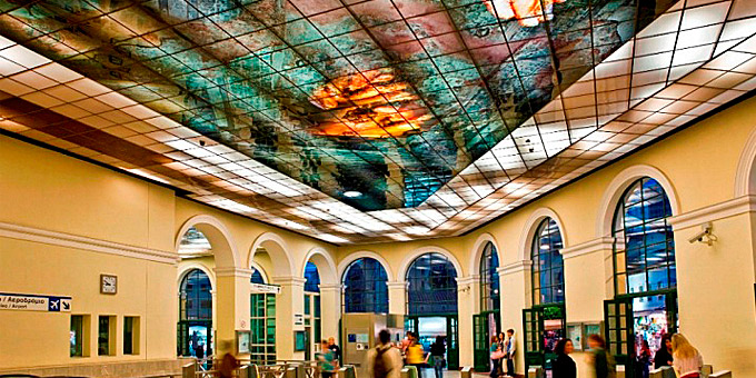 Художник, родом из Каламаты, стиль которого характеризуется использованием света, естественного или искусственного, как правило, в форме ламп с неоновыми трубками, украсил подобной эстетической визуализацией и станцию Керамикос.