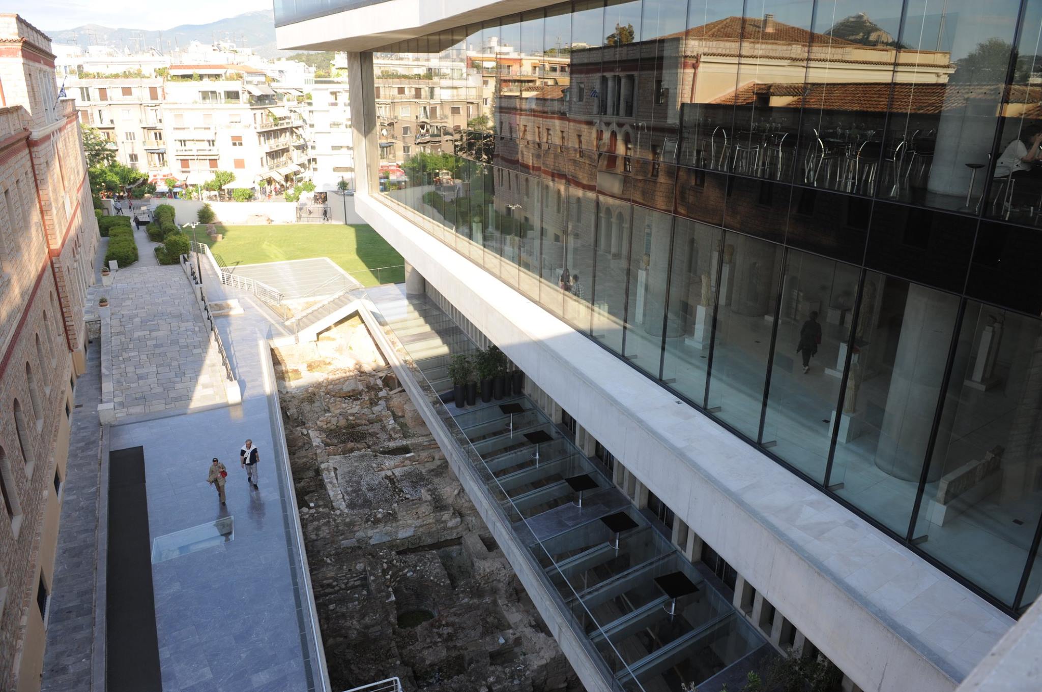 Дело в том, что выбрать место для строительства Нового музея Акрополя было непростой задачей. Где бы ни пытались копнуть - везде оказывались упрятанные от глаз остатки античных поселений. Поэтому первые конкурсы по возведению нового здания музея в 1976 и в 1979 годах так ни к чему и не привели.