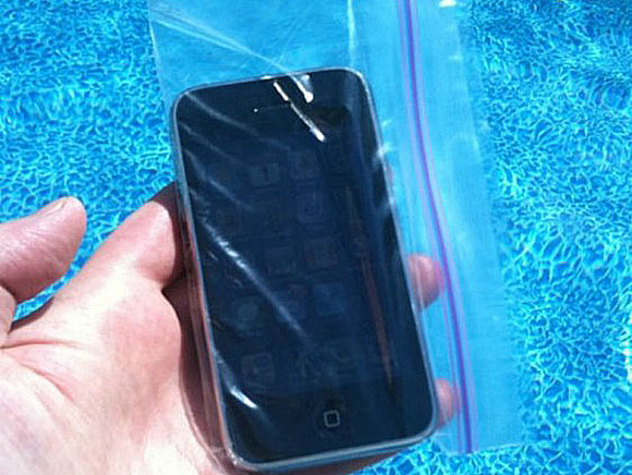 Вы находитесь на пляже или в бассейне и боитесь, что капли воды случайно попадут на ваш телефон? Нет необходимости беспокоиться. Поместите свой сотовый телефон в полиэтиленовый пакет, запечатайте его и сохраняйте спокойствие - ничего не случится, даже если вы попадёте в воду. И да, телефон работает при прикосновении, даже через полиэтиленовый пакет.