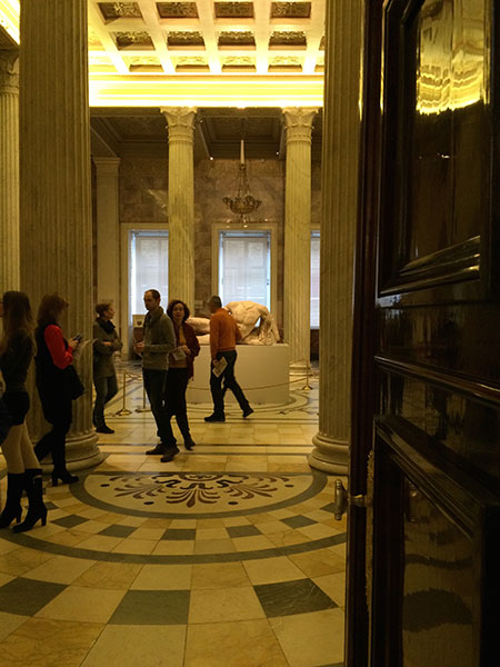 Затем мы отправились в Эрмитаж, запасаясь терпением на ожидание в очереди. Но нам повезло – билеты продавались свободно! И первым делом мы пошли в Греческий зал, чтобы увидеть мраморную скульптуру речного бога Илиссоса. Как известно, в древние времена она украшала храм Парфенона в Афинах и была вывезена в Британию в числе других скульптур британским дипломатом Элгином. Сейчас история этого экспоната на слуху по той причине, что Британский музей ни разу в истории не перемещал в другие страны «мрамор Парфенона». А тут, по случаю 250-летия Эрмитажа, сделал такое исключение. Поэтому мы с особым восторгом ходили вокруг полулежащего бога, всем своим сердцем ощущая с ним невероятную близость.